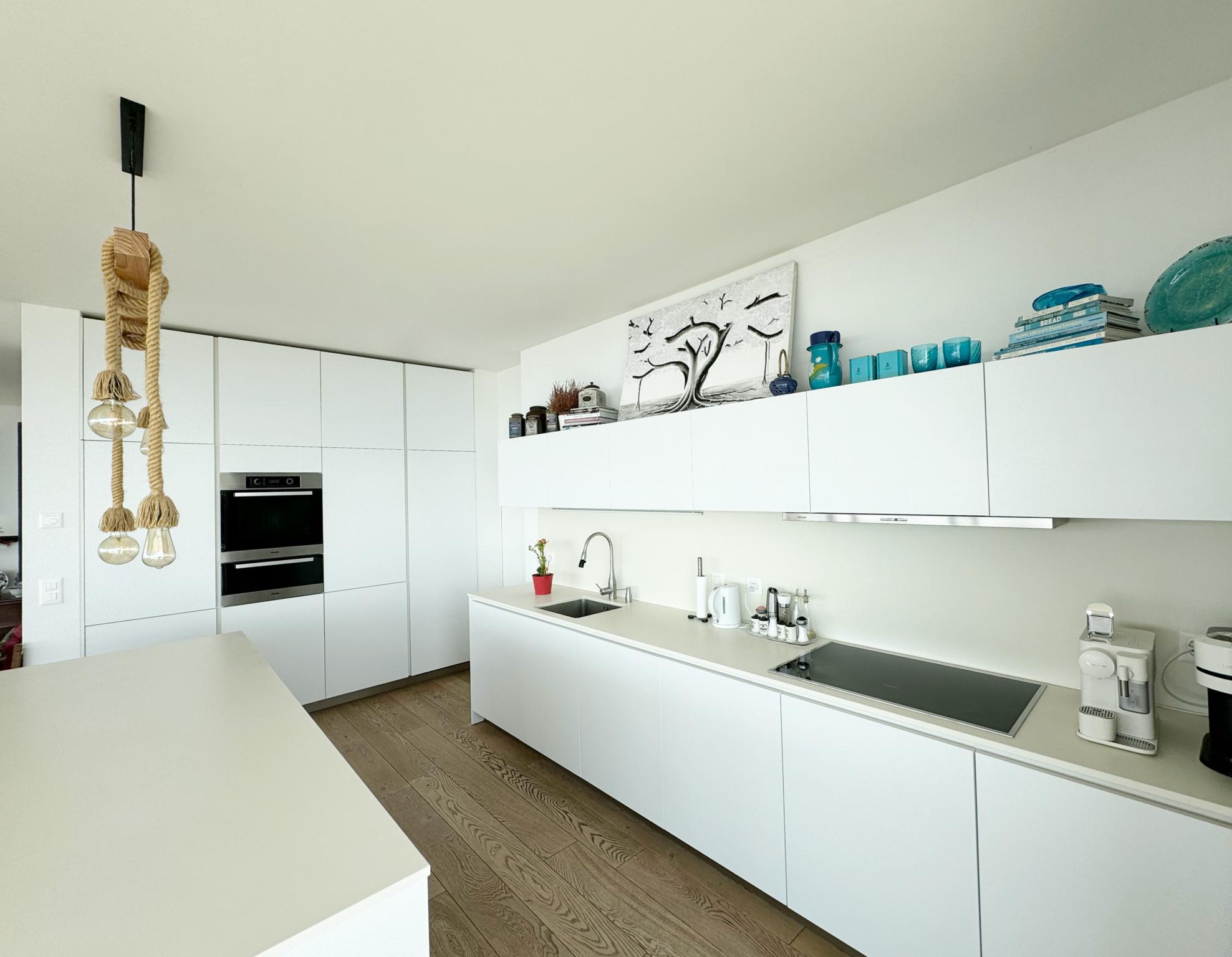 L’espace jour de cet appartement se compose d’un hall d’entrée équipé d’armoires intégrées, d’un salon et d’une salle à manger donnant accès à la terrasse et d’une cuisine ouverte équipée (four traditionnel, lave-vaisselle, réfrigérateur, congélateur et plaque de cuisson). L’espace nuit se compose d’une suite avec salle de bain/douche/dressing ainsi que de deux chambres à coucher et d’une salle de bain. L’appartement offre une buanderie, un cellier, une grande cave intérieure et un box double pour deux véhicules.